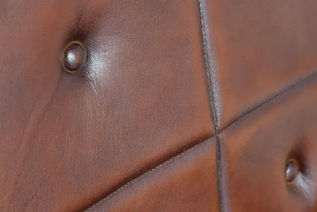 Fotelj iz naravnega usnja in rjave kovine
