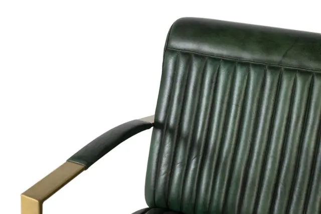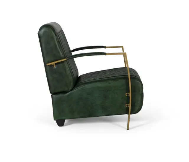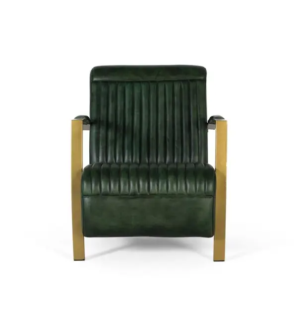 Fotelj, oblazinjen v naravnem usnju z zlatim kovinskim ogrodjem