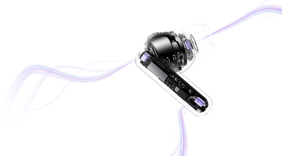 HUAWEI FreeBuds 6i imajo 240% večjo računsko moč kot prejšnja generacija6 zahvaljujoč tehnologiji Intelligent Dynamic ANC 3.0, ki omogoča, da v realnem času izračunajo zvočne valove hrupa v ušesih z obrnjeno fazo in pošljejo navodila gonilniku.