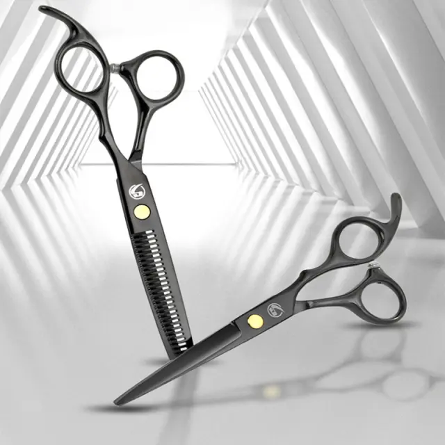 Profesionalne frizerske škarje: Škarje za lase so narejene iz nerjavečega jekla, so ostre in trpežne. Škarje so primerne za vse vrste las. Opremljene so z nastavitvenim vijakom, tako da lahko škarje enostavno prilagodite svojim potrebam glede tesnosti in napetosti.