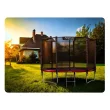 Vrtni trampolin 183 cm (6 ft) Set vsebuje: 183 cm (6 ft) trampolin na 3 dvojnih nogah, masivno kovinsko lestev, zunanjo (varnostno) mrežo - zapiranje na zadrgo, 6 stebričkov pritrjenih s peno.