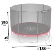 Tehnični podatki: premer (s stebričkom) 183 cm - 6ft zunanja mreža višina trampolina 45 cm višina mreže 150 cm število nog 3 dvojne (U-oblika) število stebričkov 6 kosov.