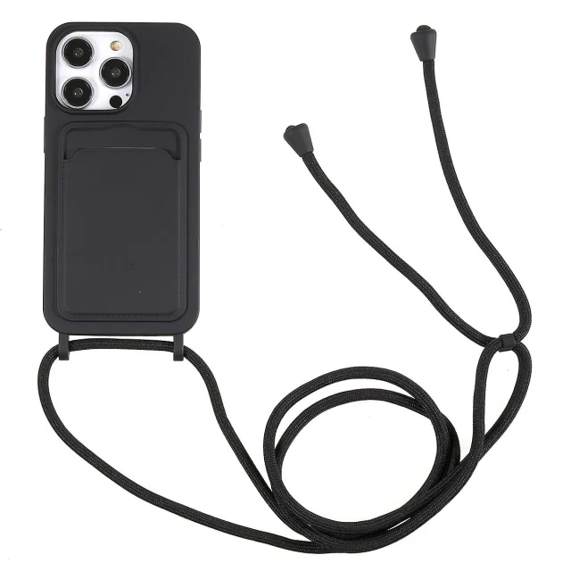 Funda de teléfono za iPhone 14 Pro Funda de silicona líquida Estuche antiarañazos a prueba de golpes con ranura para tarjetas, correa