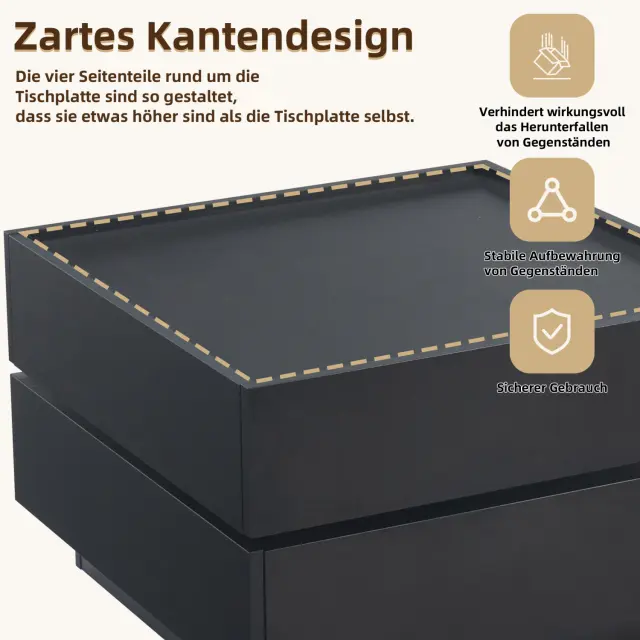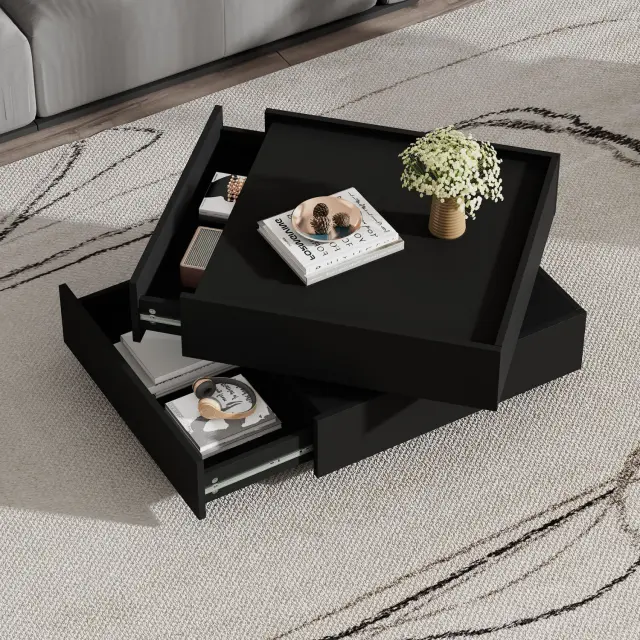Funkcionalna klubska mizica, vrtljiva za 360°, 2 polici, črna, 60x60x38 cm