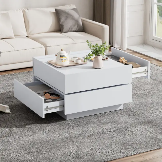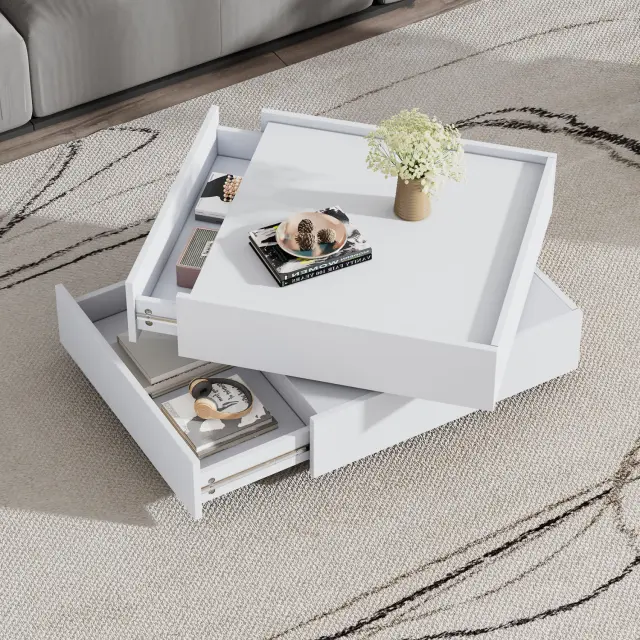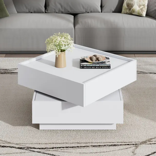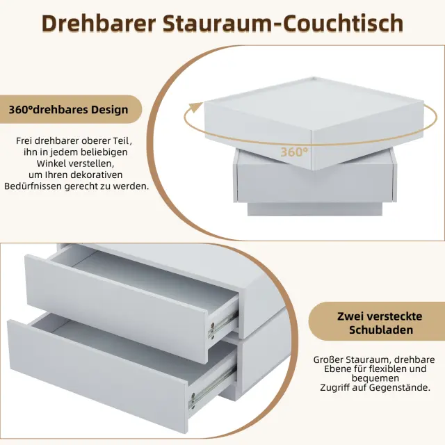 Funkcionalna klubska mizica, vrtljiva za 360°, z 2 policama, čisto bela, 60x60x38 cm