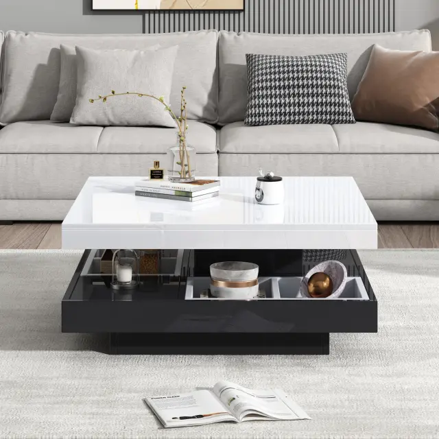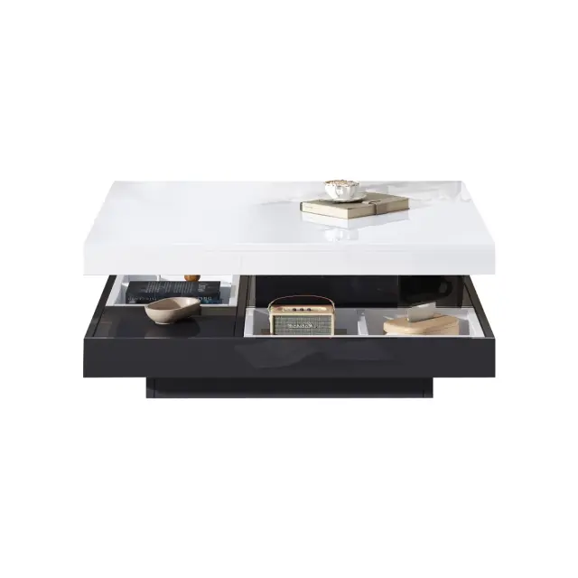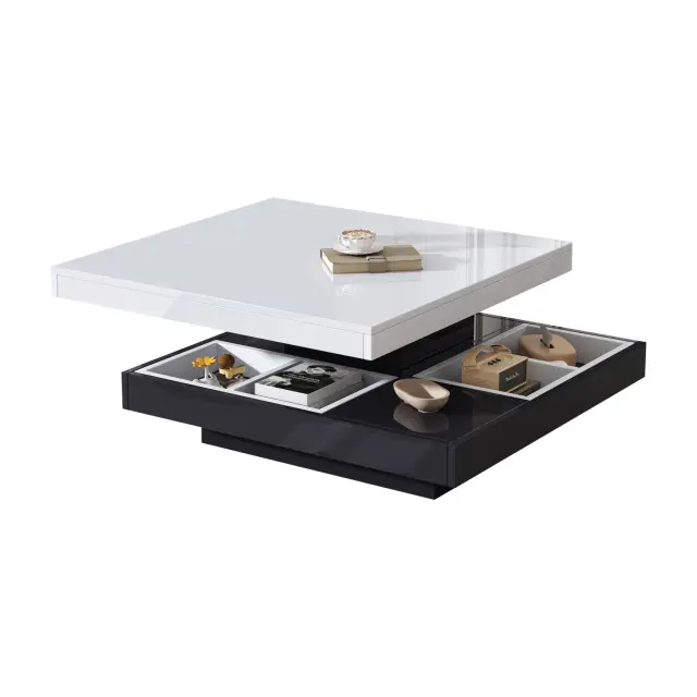 Funkcionalna klubska mizica z visokim sijajem, vrtljiva za 360°, 2-nivojska, 70x70x36 cm