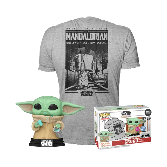FUNKO POP & TEE: MANDO - GROGU W/COOKIE figura & majica
