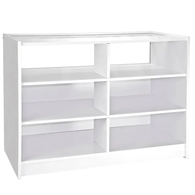 Dve razstavni omari B1200 sta zaprti maloprodajni razstavni enoti s steklenimi ploščami na vrhu in zgornjo četrtino na sprednji strani enote. Odprt zadnji del omogoča enostaven dostop do razstavnega prostora, dve spodnji polici pa nudita veliko prostora za shranjevanje pod pultom.