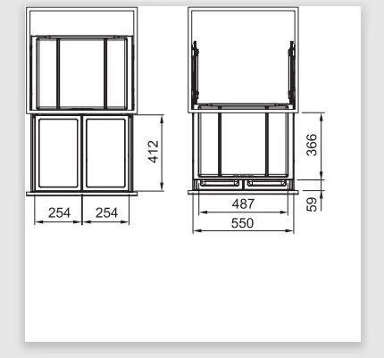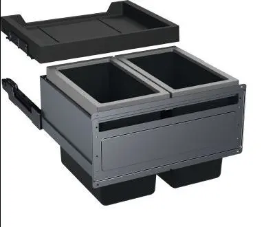 Omarica: 60 cm Dimenzije: 600 x 506 x 448 mm Vrsta ločevalnika odpadkov: izvlek frontalno z vrati omarice Vgradnja/namestitev: Pritrditev na stranske stene enostavna namestitev, priložena šablona Opombe: -vgrajen filter iz aktivnega oglja -plasticni predal kot pokrov košev za odpadke -okvir plastične posode za namestitev vrečke za odpadke