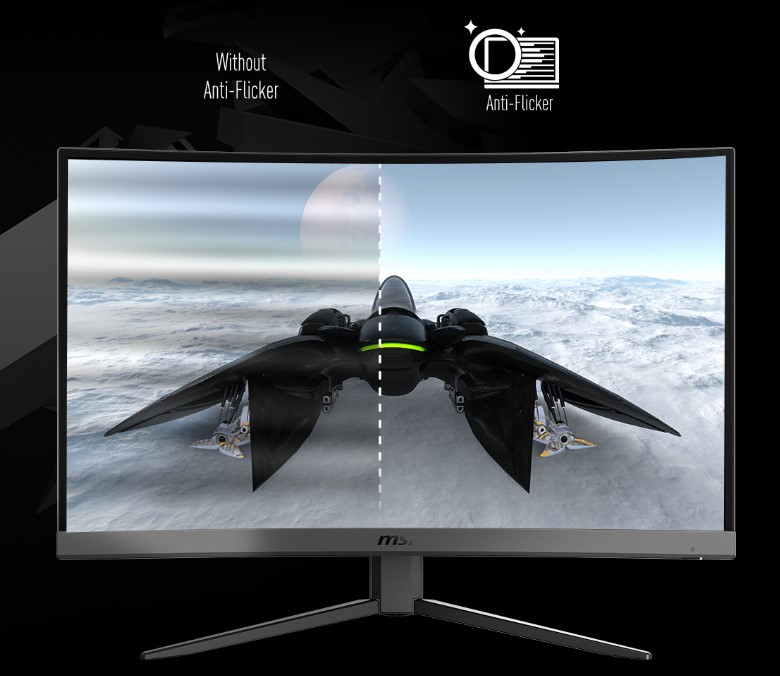 Zasloni splošnih monitorjev imajo običajno hitrost utripanja približno 200-krat na sekundo, ki je s prostim očesom neopazna, vendar lahko sčasoma povzroči utrujenost. MSI-jeva tehnologija Anti-Flicker zagotavlja zelo udobno izkušnjo gledanja, saj zmanjšuje količino utripanja.