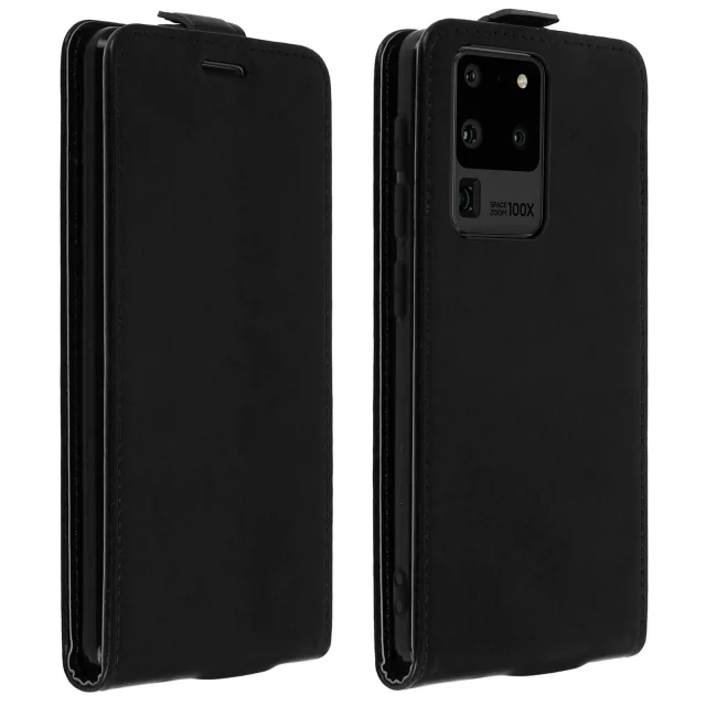Galaxy S20 Ultra Vertical Flip Case Držalo za kartice, gladek ucinek - crn