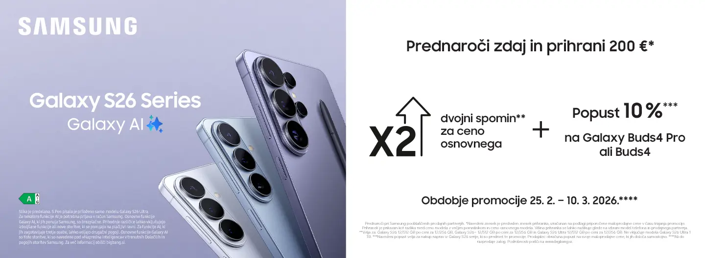 Ob nakupu pridobiš dvojni spomin za ceno osnovnega ter 10 % popusta ob hkratnem nakupu Galaxy Buds4 ali Buds4 Pro*.