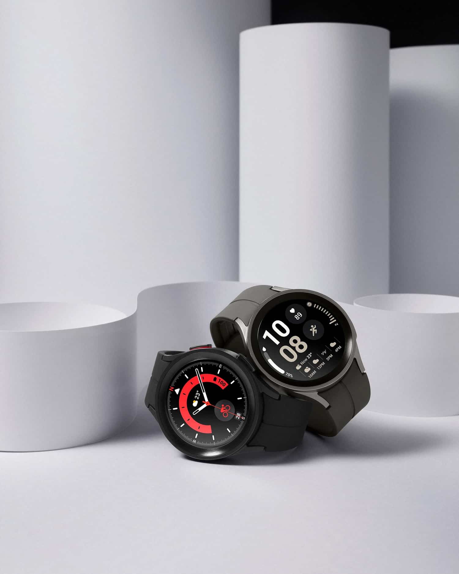 Galaxy Watch5 Pro, ustvarjen za tiste, ki radi uživajo na prostem, je najnovejši dodatek v portfelju Galaxy Watch. Od pohodništva do kolesarjenja in več, Watch5 Pro je pripravljen na izziv zahvaljujoč vrhunskim materialom. Odlikuje ga izboljšan safirni kristal, ki je bolj odporen proti obrabi in trpežno ohišje iz titana, ki ščiti zaslon s štrlečim okvirjem. Galaxy Watch5 Pro je opremljen tudi s povsem novim športnim paščkom D-Buckle[19], ki ponuja robustno vzdržljivost z elegantnim in čistim prileganjem.