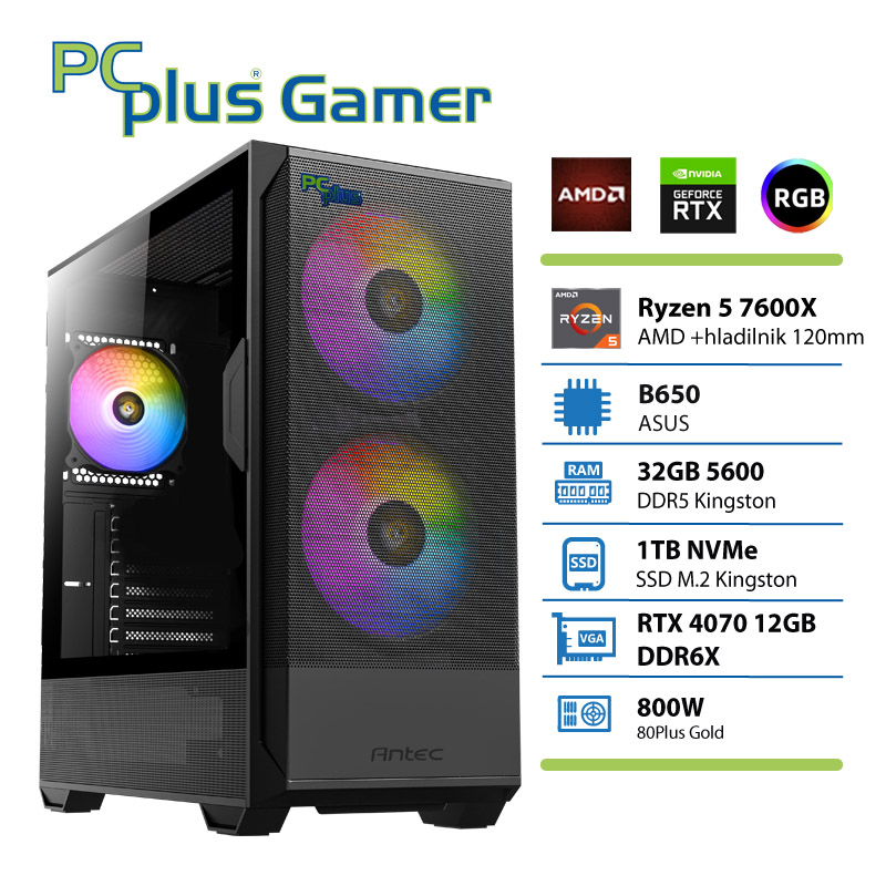 PCPLUS Gamer Ryzen 5 7600X 32GB 1TB NVMe SSD RTX 4070 12GB gaming namizni računalnik