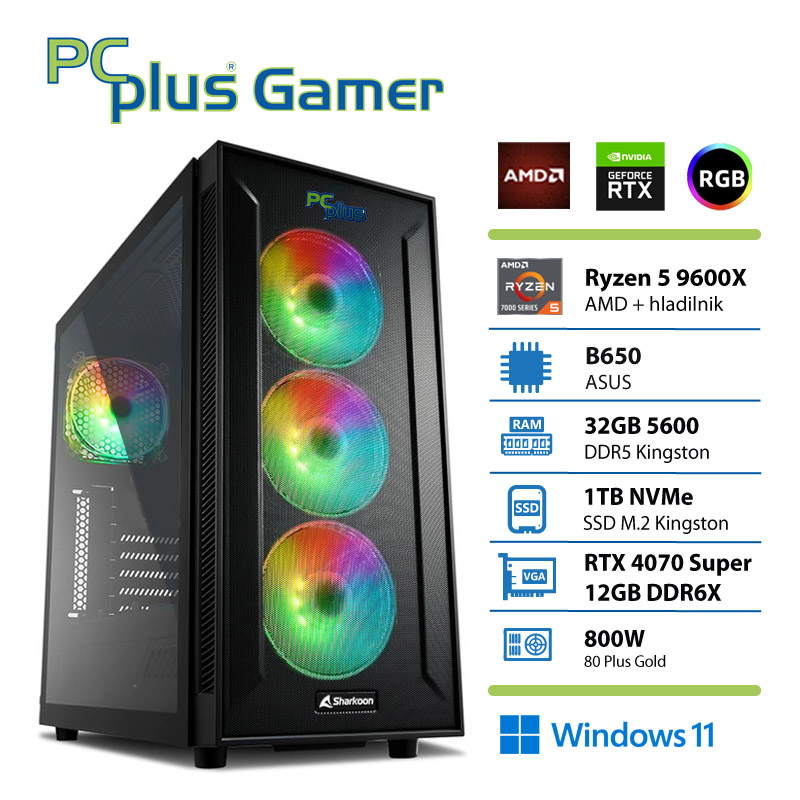 PCPLUS Gamer Ryzen 5 9600X/32GB/2TB/RTX 4070 Super 12GB/W11 Home gaming namizni računalnik