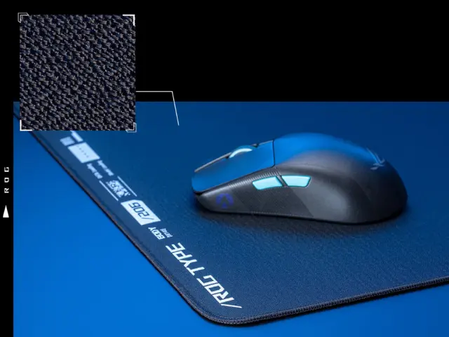 OASUS ROG Hone Ace XXL je izjemno velika igralna podloga za miško s podlago iz izjemno gladke nedrseče gume in ima površino iz hibridnega blaga, zasnovano za doslednost in optimalen nadzor, hkrati pa je odporna na vodo in olje ter