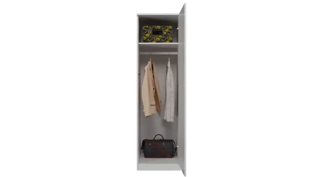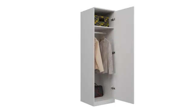 Značilne lastnosti tega izdelka so predvsem trdna izdelava, moderen videz in UNIVERZALNOST . Ko se odločite za nakup garderobne omare SD-50, v kompletu dobite palico za obešanje oblačil in police. Glede na namembnost omare v danem primeru lahko med montažo izberete ustrezno možnost.