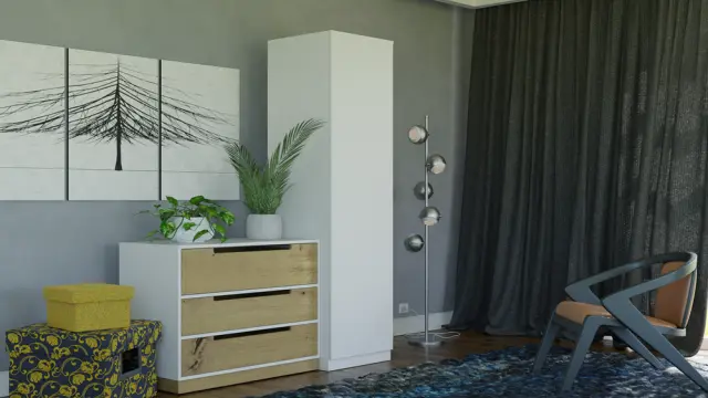 Omara SD-50 je praktičen kos pohištva, ki bo svoje mesto našel tako v spalnici, kjer imamo garderobne omare, pa tudi v pisarni ali studiu, kjer morajo imeti svoje mesto dokumenti in se lahko skrijejo vrhnja oblačila.
