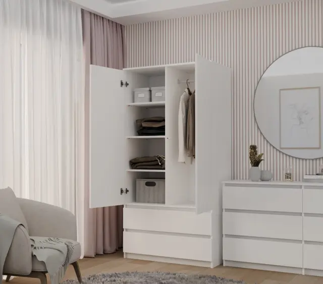 Omara SS-90 je praktičen kos pohištva, ki bo svoje mesto našel tako v spalnici, kjer imamo garderobne omare, pa tudi v pisarni ali studiu, kjer morajo imeti svoje mesto dokumenti in se lahko skrijejo vrhnja oblačila.