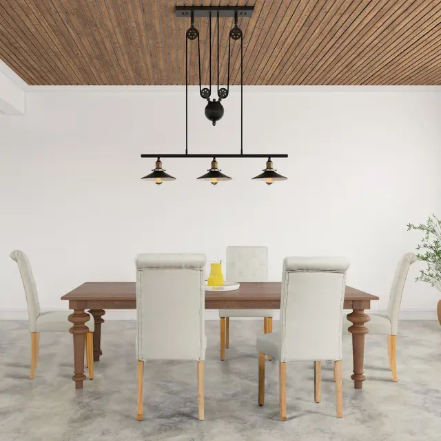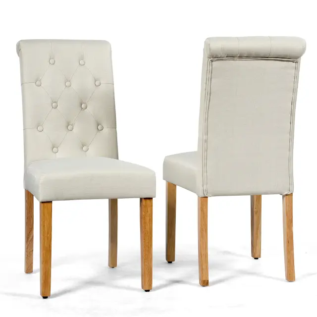 Garnitura 2 jedilnih stolov z gumbom, oblazinjenih s tkanino, z gumijastimi nogami Bež