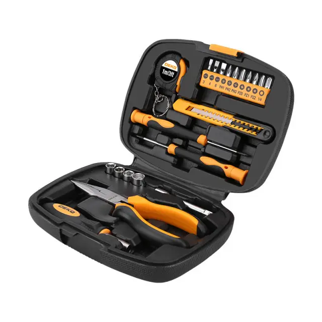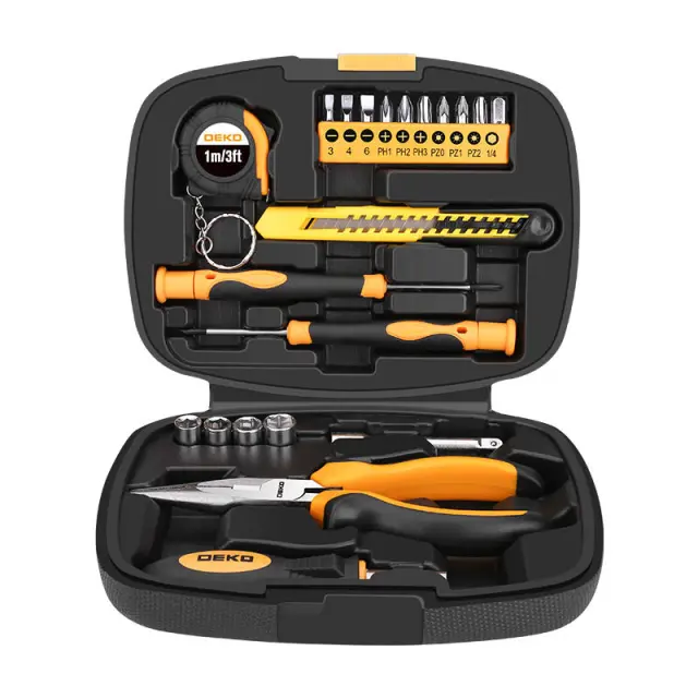 Potrebujete vsestranski set za svojo domačo delavnico? Set orodij Deko Tools TZ21 bo deloval odlično! Priročen in funkcionalen set orodja vam bo olajšal delo. Vsebuje kar 21 kosov orodja. Med njimi nož z zlomljenim rezilom, dolge klešče, merilni trak ali 2 natančna izvijača itd. Predmeti so izdelani iz visokokakovostnih materialov in zagotavljajo udobno uporabo. Vsi elementi kompleta so nameščeni v praktičnem kovčku, zaradi česar je njihovo shranjevanje enostavno in udobno.