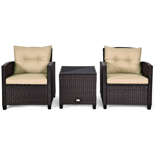 Garnitura vrtnega pohištva Miza + 2 fotelja iz ratana