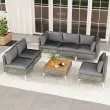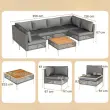 【Vsestranske možnosti postavitve】Z modularno zasnovo, ki vključuje 1 mizico za kavo, 2 vogalna kavča in 4 kavče brez naslonjal, lahko ta komplet vrtnega pohištva iz ratana razporedite v različne konfiguracije, da se popolnoma prilega vašemu vrtu, dvorišču ali bazenu. Za daljšo življenjsko dobo se izogibajte izpostavljenosti dežju.