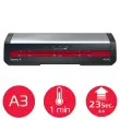GBC 480HS Office A3 Laminator je visokozmogljiv laminator, ki predstavlja profesionalno rešitev za hitro in učinkovito zaščito vaših dokumentov v pisarni, šoli ali urejenem poslovnem okolju. Zahvaljujoč izjemno hitremu ogrevanju v približno 1 minuti lahko takoj začnete laminirati, saj ta model A3 laminira 75 mikronski dokument A4 v samo približno 23 sekundah. To pomeni večjo produktivnost in manj čakanja pri vsakodnevnih opravilih.