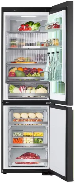 En hladilnik, veliko barv - sprostite svojo ustvarjalnost z izbiro barv hladilnika in glasbe za predvajanje. Pustite opombo na naslovnici zaslona za nekoga. Poraba energije je izračunana v skladu z EN 62552:2020, ki zahteva, da je osvetlitev MoodUP™ LED med testiranjem izklopljena; Poraba energije se lahko razlikuje glede na uporabo in čas vklopa osvetlitve. Izberite glasbo za svojo zabavo med vnaprej nastavljenimi seznami predvajanja. Prek zvočnika , vgrajenega v hladilnik predvajajte glasbo, ki jo imate na pametnem telefonu. Vrata zamrzovalnika rahlo zasvetijo, če se hladilniku približate v temi. Preprečite izgubo hladnega zraka s potrkavanjem po steklu InstaView in tako bolje ohranite svežino hrane. Začnite uživati v udobju pametnega življenja z aplikacijo LG ThinQ. Prenesite ga brezplačno na svoj pametni telefon iOS ali Android.