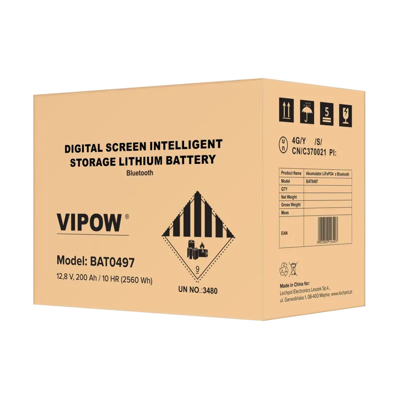Gel baterija LiFePO4 VIPOW, Bluetooth 200Ah BMS