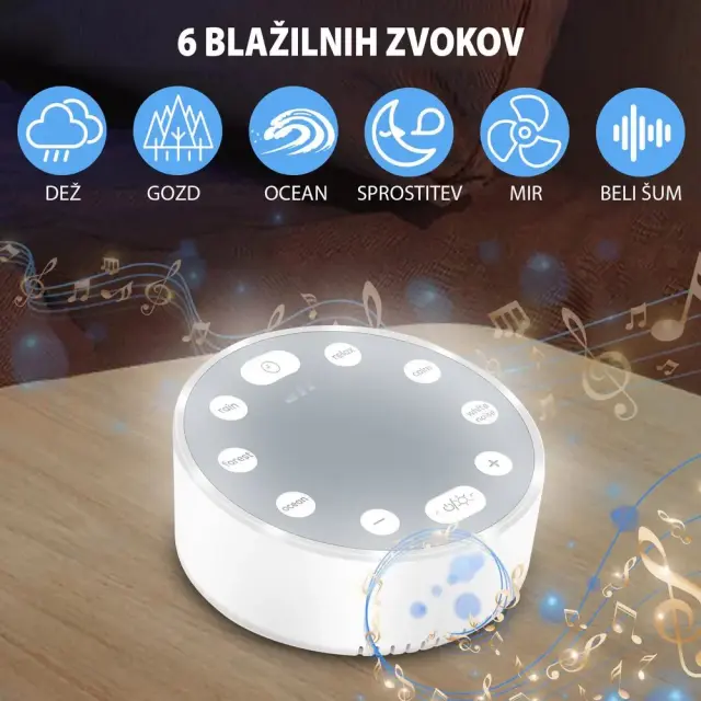 Generator belega šuma s 6 zvoki, Pripomoček za boljše spanje, Nočna lučka | SOUNDMAC