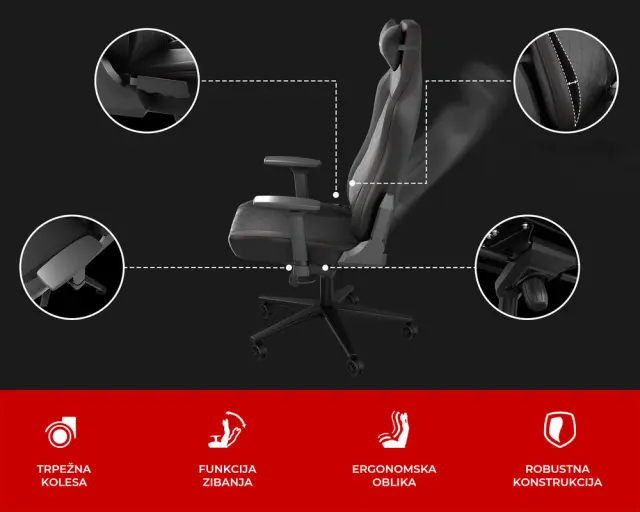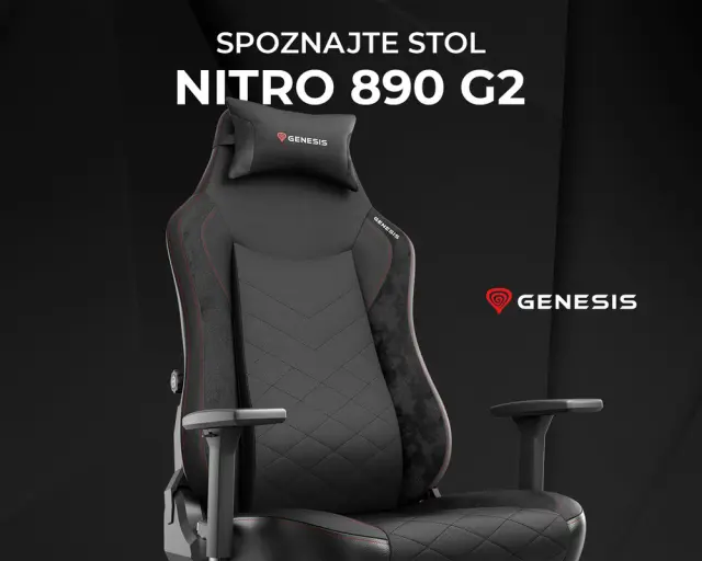 GENESIS NITRO 890 G2 gaming stol, ergonomski, nastavljiva višina / naklon, 3D nasloni za roke, kolesa CareGLide™, črn