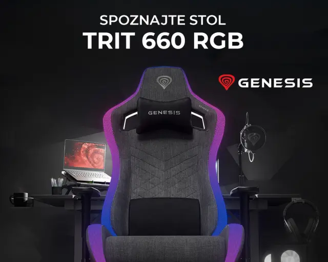 Gaming/pisarniški stol GENESIS TRIT 660 RGB, ergonomski, nastavljiva višina/naklon