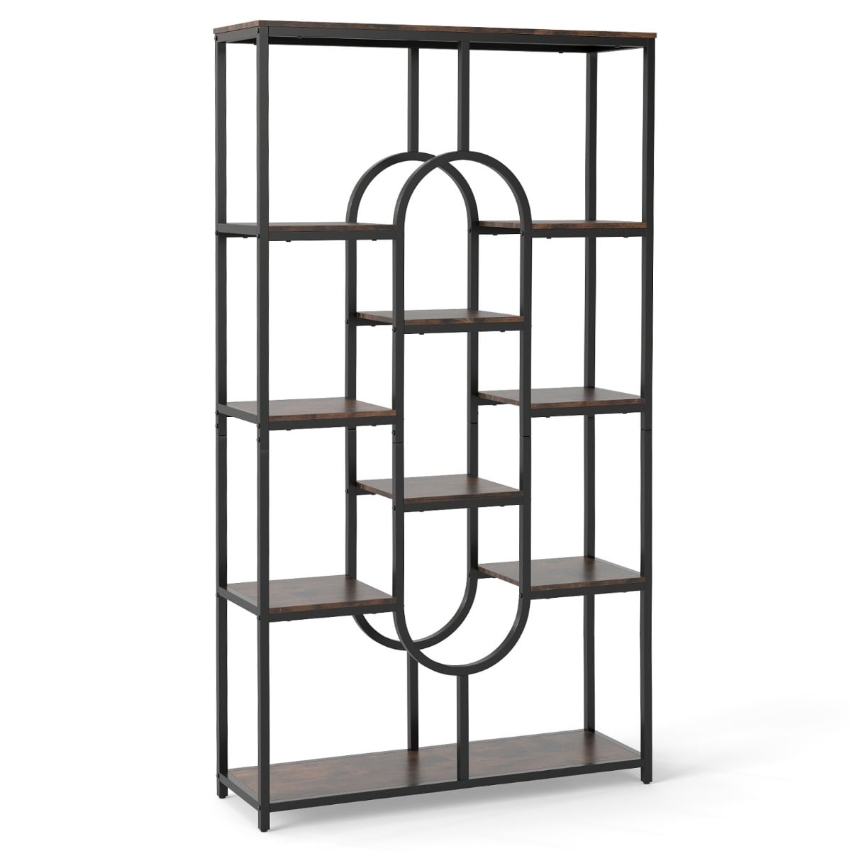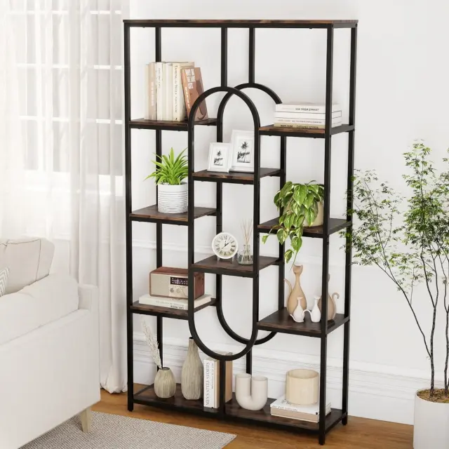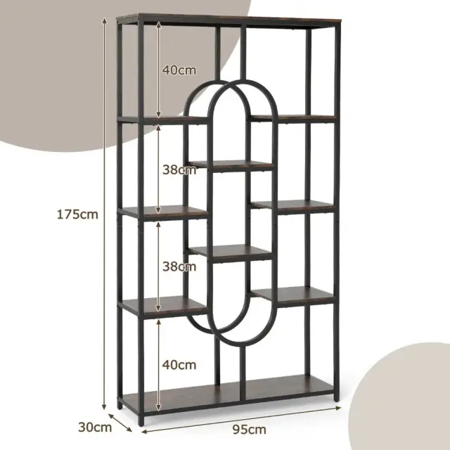 Ta petnadstropna knjižna omara ponuja veliko odprtega prostora za shranjevanje, ki je idealen za urejanje knjig, okrasnih predmetov in vsakdanjih predmetov. Zaradi večnivojske zasnove je vertikalni prostor kar najbolje izkoriščen, zato je učinkovita in vsestranska rešitev za shranjevanje. Presenetljiva ovalna oblika doda sodoben in eleganten pridih vsakemu prostoru. Odličen dekorativni element in praktičen organizator, ki izboljša številne bivalne prostore.