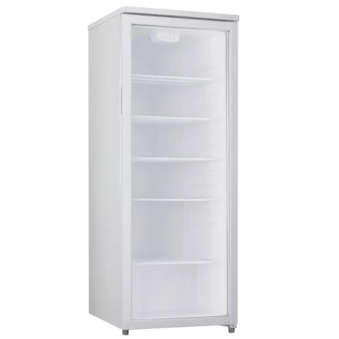 Univerzalni hladilnik Geratek Kiruna GK2100W, prostornina 259 l , steklena vrata, steklo, nastavljiv termostat z vrtljivim gumbom, avtomatsko odtaljevanje, LED osvetlitev, 5 žičnih polic, 140 steklenic, hrupnost 42dB, barva: bela.