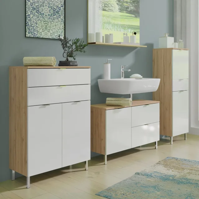 Germania Omarica za umivalnik GW-Mauresa 34x80x56 cm hrast in bela