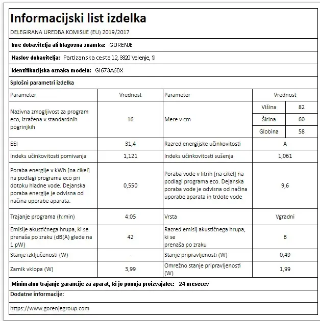 GORENJE GI673A60X pomivalni stroj
