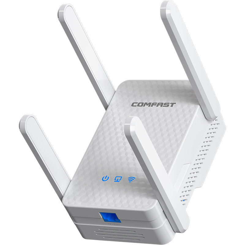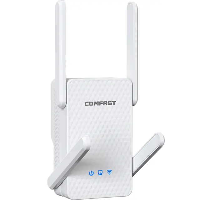 Izboljšana pokritost: podaljšek, opremljen s štirimi zunanjimi antenami z visokim ojačenjem in petimi ojačevalniki moči FEM, zagotavlja izjemno moč in prodor signala. Uživajte v širšem območju pokritosti in odpravite mrtve cone v vašem domu ali pisarni.