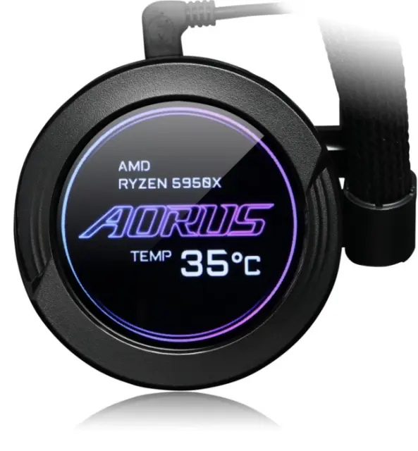 DODATNO: RGB FUSION 2.0, AORUS ENGINE, okrogli 60mm barvni LCD zaslon, ki prikazuje status in lastnosti hlajenja, preko programske opreme pa lahko uporabnik spreminja in prilagaja nastavitve in barvno podobo hladilnika.
