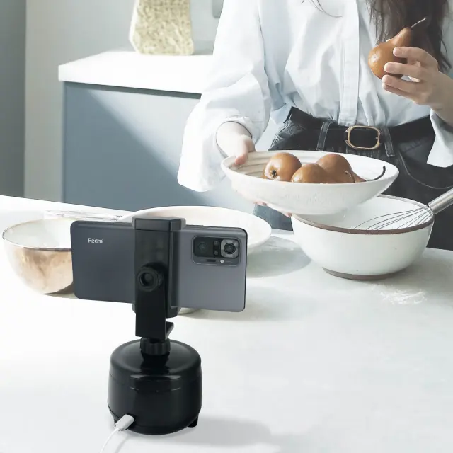 Držalo Smart Gimbal, zasnovano za sprostitev vaših rok pri snemanju fotografij ali videoposnetkov. Podpira tehnologijo AI vašega pametnega telefona (samodejno zazna obraz in nato začne slediti). Lahko se vrti za 360°, obrnil se bo tja, kamor želite iti (brez mrtvih kotov) / Visokohitrostni motor za dinamično sledenje brez tresenja. Idealno za vloge, pretakanje v živo, predstavitve, Instagram, Tiktok, Facebook Live itd.