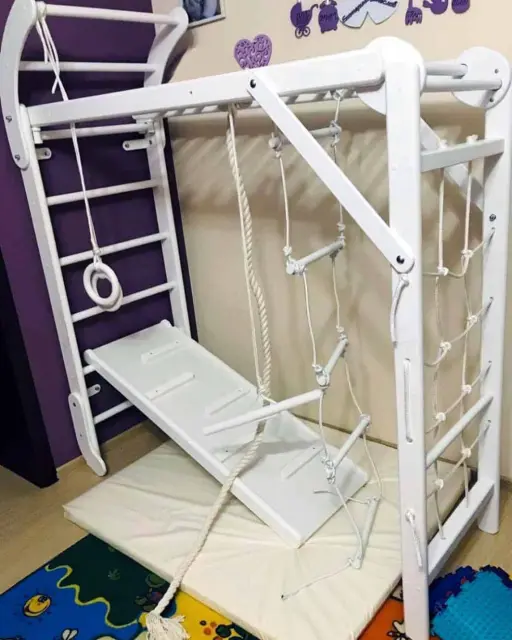 Gimnastična lestev v otroški sobi spodbuja sproščanje odvečne energije, razvoj koordinacije gibov, sodelovanje med otroki in skupno preživljanje časa celotne družine. Gimnastične lestve spodbujajo tudi razvoj mišic nog in rok ter moči prijema pri otroku. Uporaba gimnastičnega kompleta bo zagotovo vplivala na boljše rezultate otroka ne le pri športu, temveč tudi pri učnem napredku. Dodatna oprema, ki je na voljo v naši ponudbi, služi za razširitev gimnastične lestve Mini v nove, zanimive vadbene pripomočke. Lesena gimnastična lestev Mini je zdravo darilo za otroka, ki omogoča razvoj malčka skozi igro.