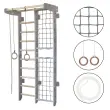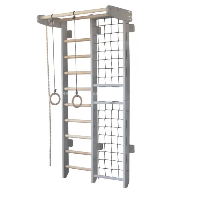 Kombikova sobna lestev je pravi opičji gaj za male opice. Stenski komplet vključuje tako gimnastično lestev kot plezalno mrežo, ki podpirata otrokov motorični razvoj. Lestev ima maksimalno obremenitev 100 kg, zato jo lahko uporabljajo tudi odrasli. Gimnastični set je izdelan iz naravnih materialov in je varen za otroke. Elegantna barvna shema se bo zlahka vključila v sodobno notranjost.
