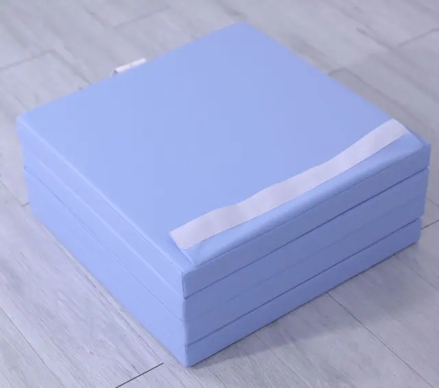 S štirimi zložljivimi ploščami je ležišče izredno kompaktno in enostavno za shranjevanje, ko pa je zloženo, zagotavlja udobno površino za vadbo, igro in sprostitev. Z merami 100 x 100 cm in debelino 5 cm predstavlja popolno ravnovesje med blaženjem in stabilnostjo.