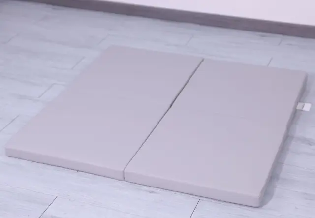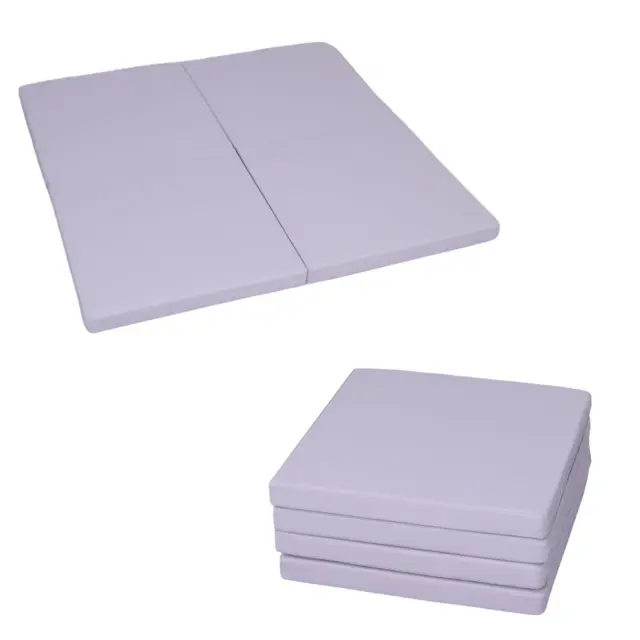 S štirimi zložljivimi ploščami je ležišče izredno kompaktno in enostavno za shranjevanje, ko pa je zloženo, zagotavlja udobno površino za vadbo, igro in sprostitev. Z merami 100 x 100 cm in debelino 5 cm predstavlja popolno ravnovesje med blaženjem in stabilnostjo.