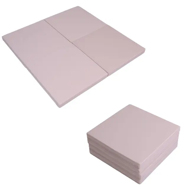 S štirimi zložljivimi ploščami je ležišče izredno kompaktno in enostavno za shranjevanje, ko pa je zloženo, zagotavlja udobno površino za vadbo, igro in sprostitev. Z merami 100 x 100 cm in debelino 5 cm predstavlja popolno ravnovesje med blaženjem in stabilnostjo.