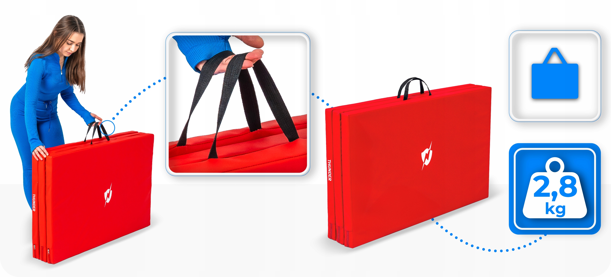 Integrierte Transportgriffe erleichtern das Tragen der Matte und erhöhen den Nutzungskomfort.
