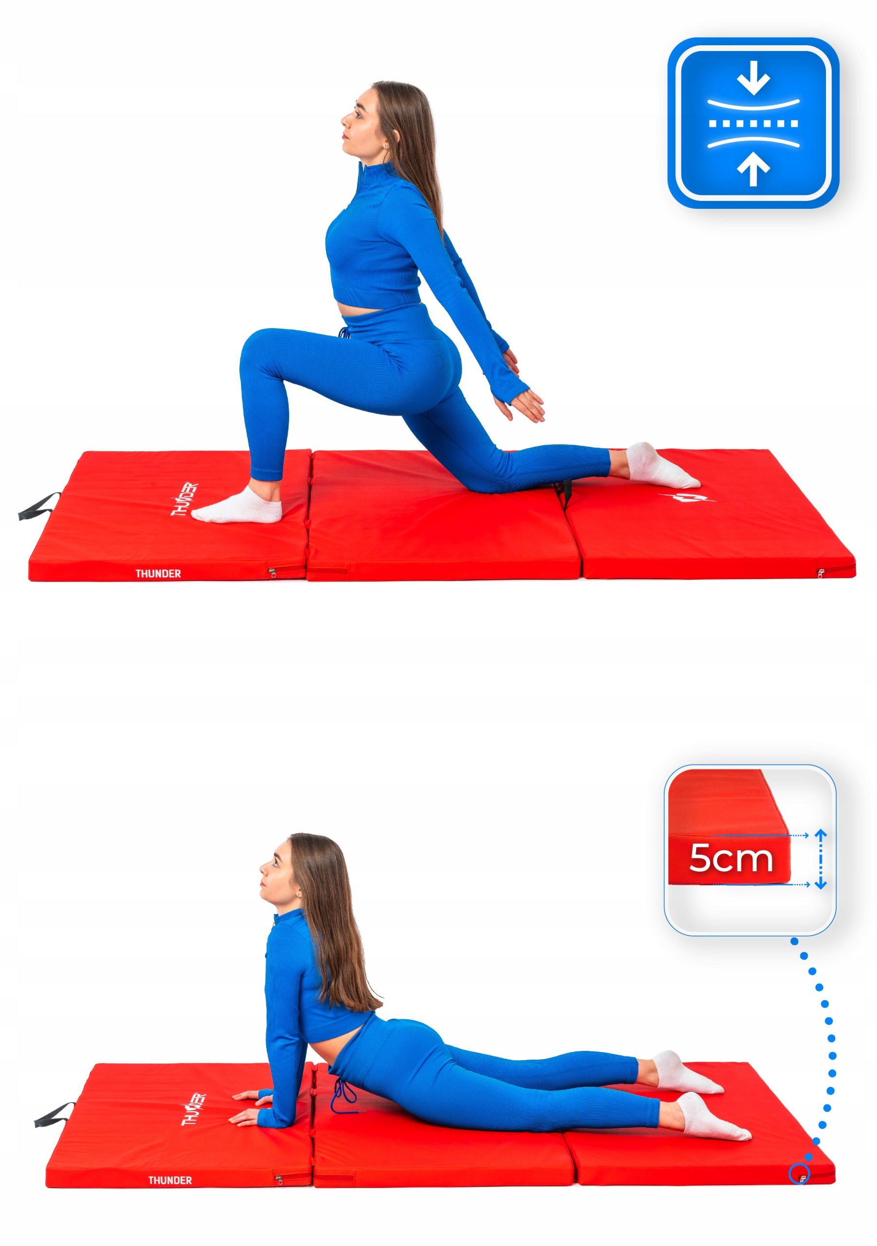 Gymnastikmatte MG-03-RED der Marke Thunder ist eine stabile und komfortable Trainingsunterlage, ideal für Gymnastik, Kampfsport und Akrobatik. Dank der harten Struktur und der rutschfesten Oberfläche bietet sie hervorragende Stabilität und Sicherheit während des Trainings.