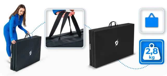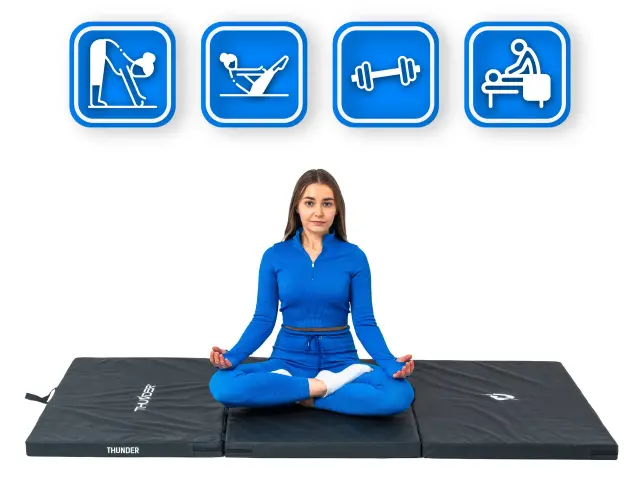 Gimnastična zložljiva podloga za vadbo vzmetnica – trda, nedrseča, 197×100×5 cm THUNDER® MG-03-BLACK