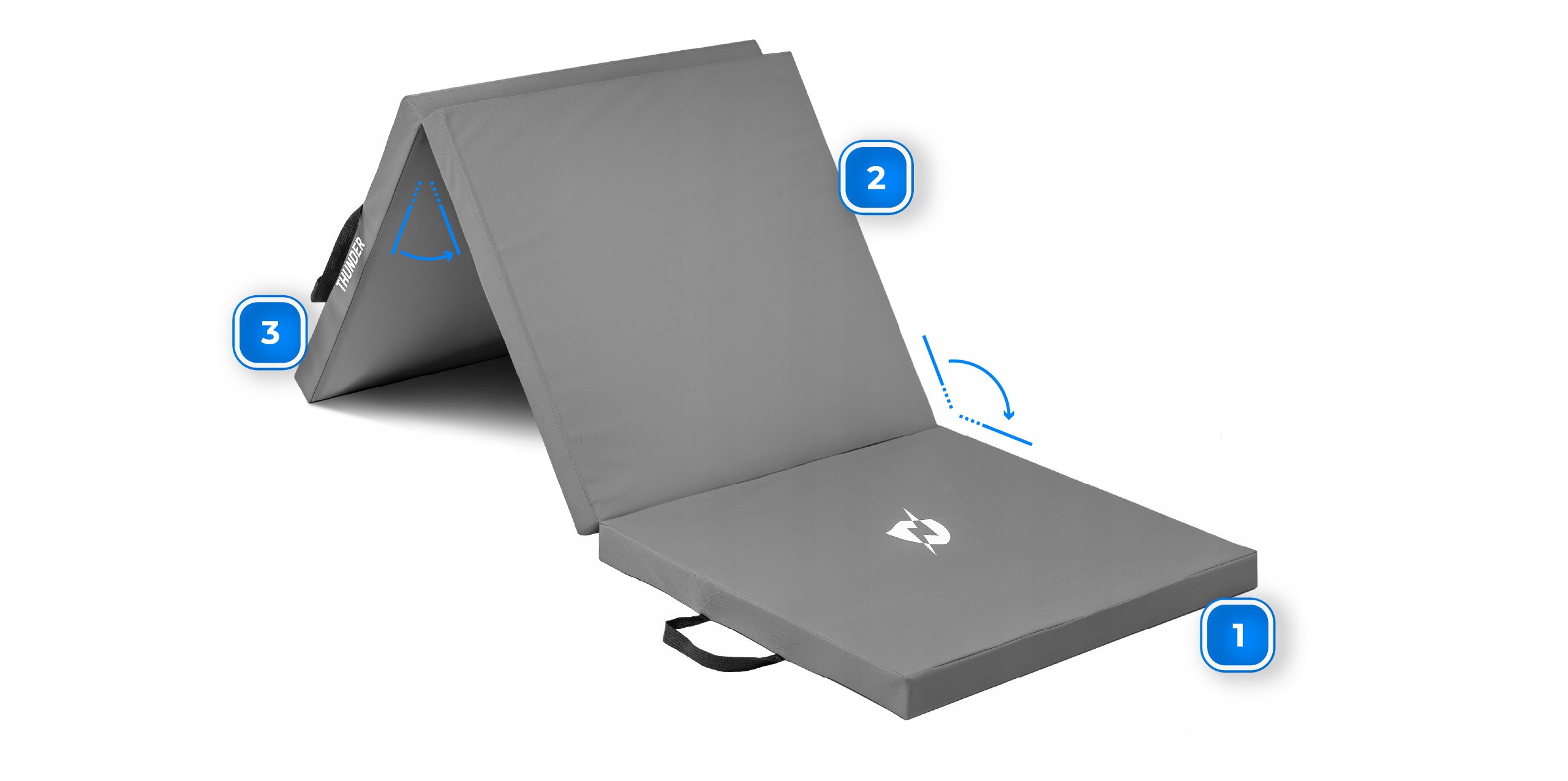 Blazina je sestavljena iz treh segmentov, kar omogoča hitro zlaganje na kompaktne dimenzije 60 × 60 × 15 cm. Zavzame malo prostora in je priročna za transport.