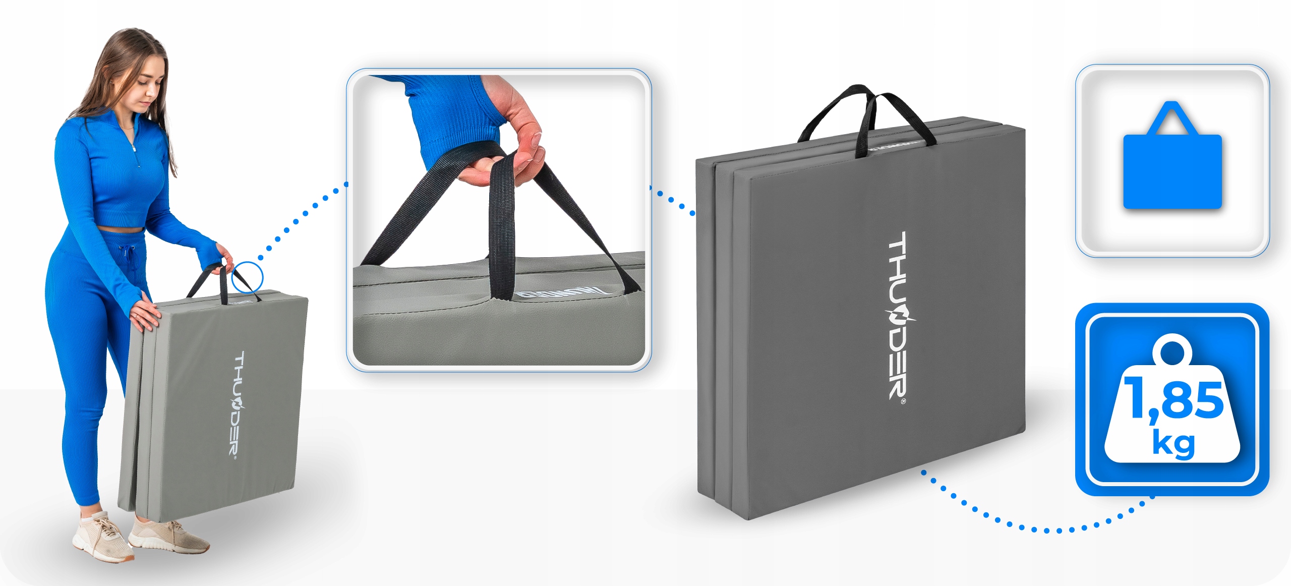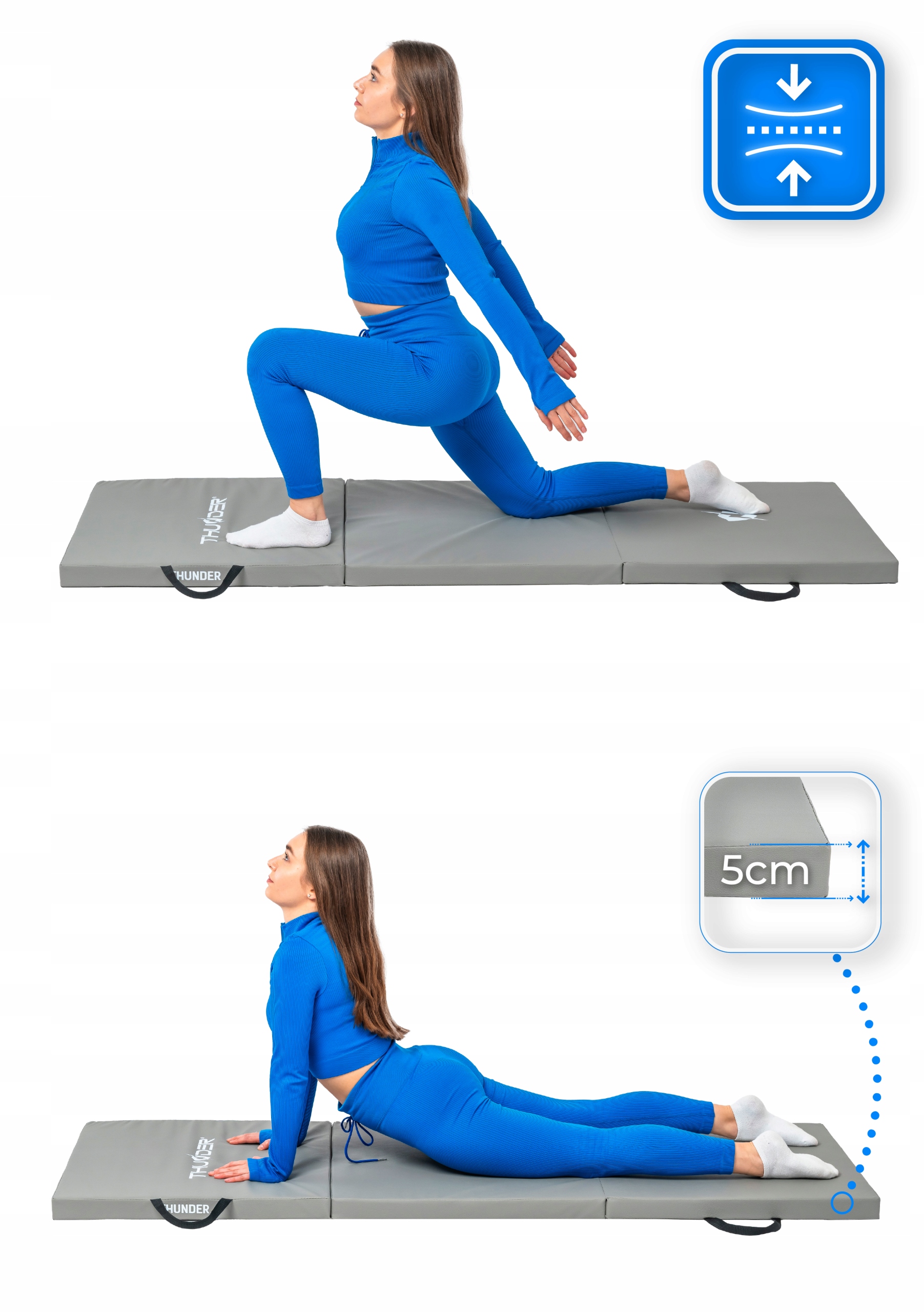 Gimnastična blazina MG-02-GREY blagovne znamke Thunder je trdna in udobna podlaga za vadbo, idealna za trening gimnastike, borilnih veščin in akrobatike. Zaradi trde strukture in nedrseče površine zagotavlja odlično stabilnost in varnost med vadbo.